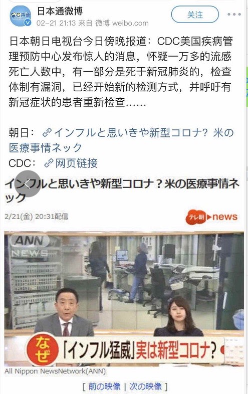 The news has then spread swiftly on Chinese social media. As of press time, it has been upvoted over 220,000 times on Sina Weibo since the post was uploaded on the evening of Feb. 21, receiving more than 14,000 comments, with many assuming that the COVID-19 may come from the US, and that’s why so many people died in the US because of “flu symptoms.”