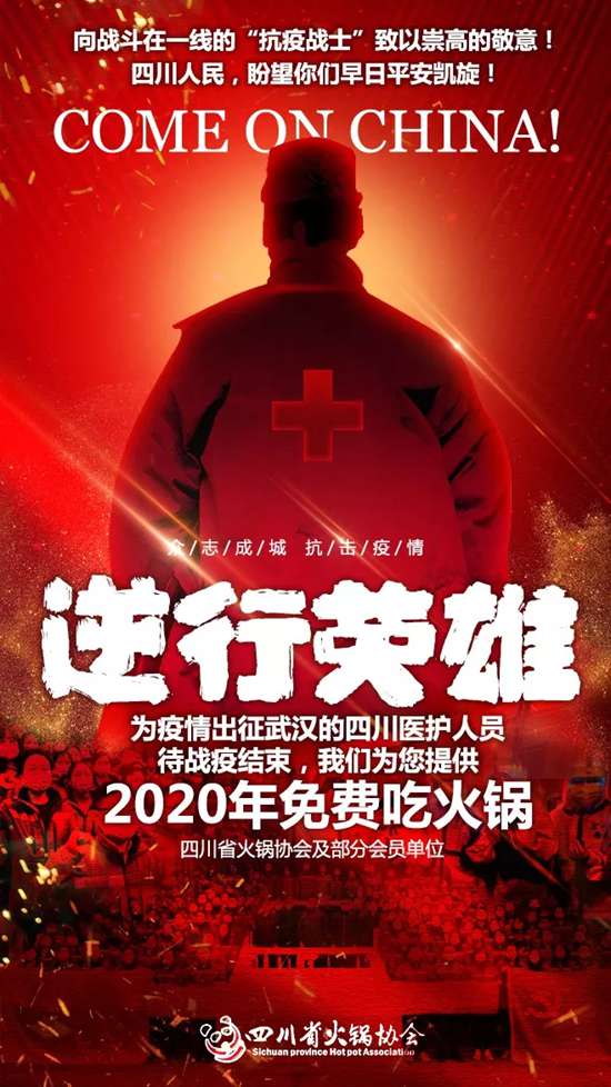More restaurants are actively responding to the call, being ready to provide free hot pot for relevant medical workers for a year after their victory over the epidemic, according to the association.