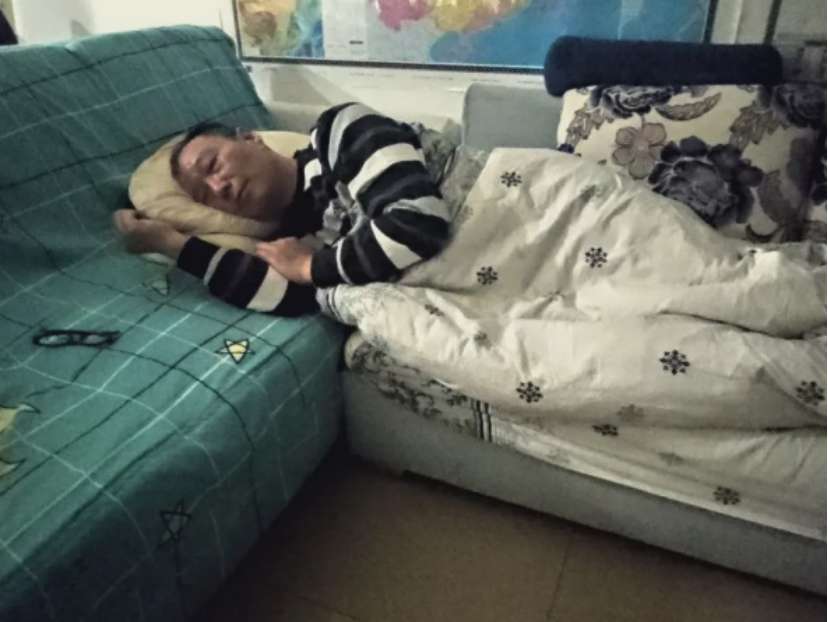 After this hard task at the hospital, Wang takes off his protective clothing, takes a shower in the hospital’s designated cleaning area, puts on clean clothes and quickly goes home. Not wanting to disturb his family, he sleeps on the sofa with his clothes on. It is 3 a.m.