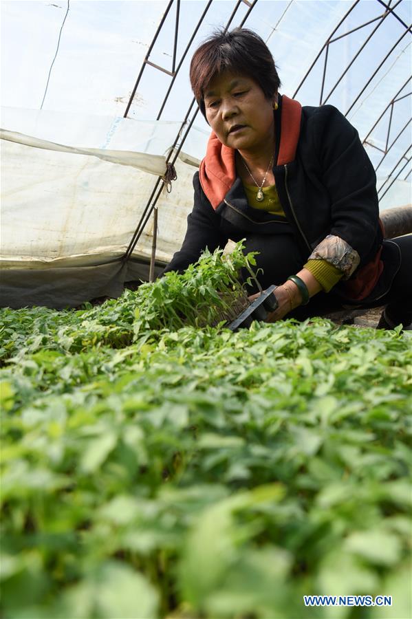 A staff member works in a greenhouse at a farm of the Xinjiang Production and Construction Corps in northwest China's Xinjiang Uygur Autonomous Region, March 1, 2020. Xinjiang Uygur Autonomous Region has begun to organize locals to start spring ploughing while taking strict measures to prevent and control the spread of novel coronavirus disease (COVID-19). (Xinhua/Ding Lei)
