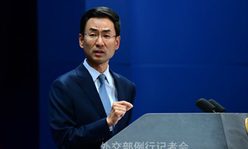 Chinese Foreign Ministry spokesperson Geng Shuang at the press conference on Tuesday Photo: Foreign Ministry website