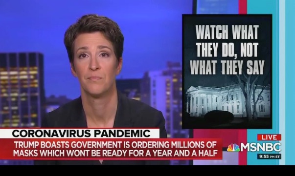 MSNBC’s Rachel Maddow said on her broadcast that Trump is “lying” at his daily briefings. (Screenshot from MSNBC live broadcast)