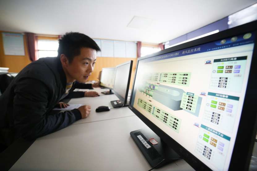 A mining enterprise in Bijie, southwest China’s Guizhou province utilizes cloud service to achieve automatic monitoring and remote control for gas extraction, fan operation, video surveillance, and power supply. Cloud computing has improved security and lowered cost for the company. Photo by Luo Dafu, People’s Daily Online