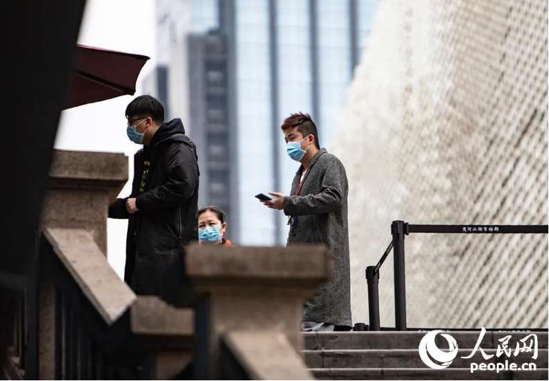 People wait to show their QR health codes before entering business districts. (China Photographers Association/Chen Liming)