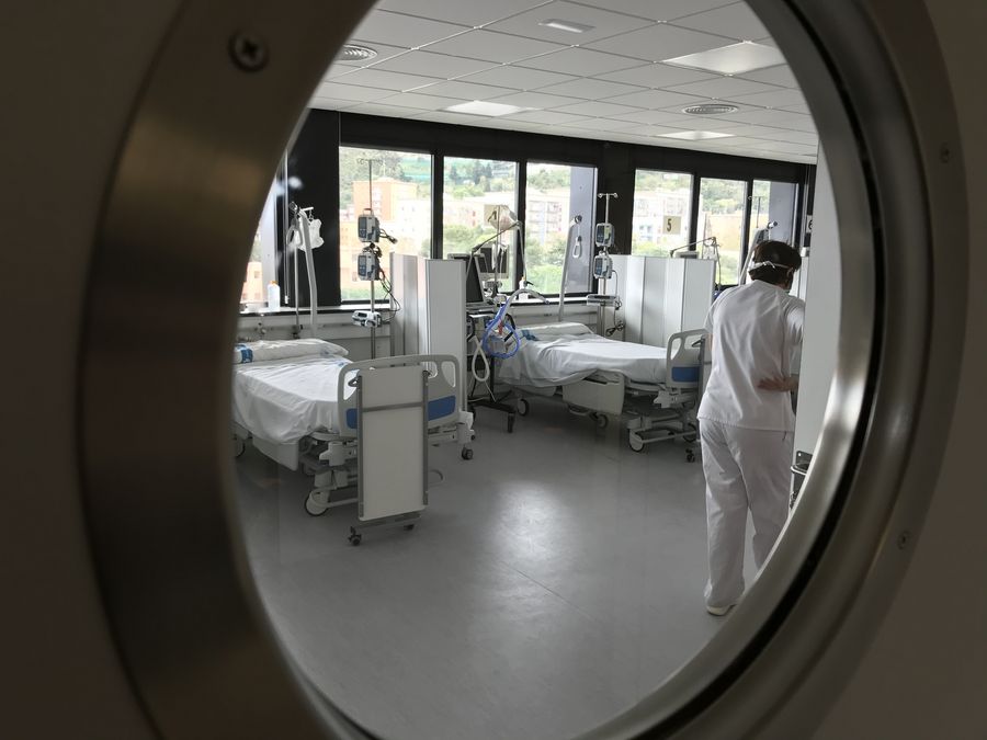 Beds are seen in one of the seven new Intensive Care Units (ICU) in Vall d'Hebron Hospital, in Barcelona, Spain, March 26, 2020. (Vall d'Hebron Hospital via Xinhua)
