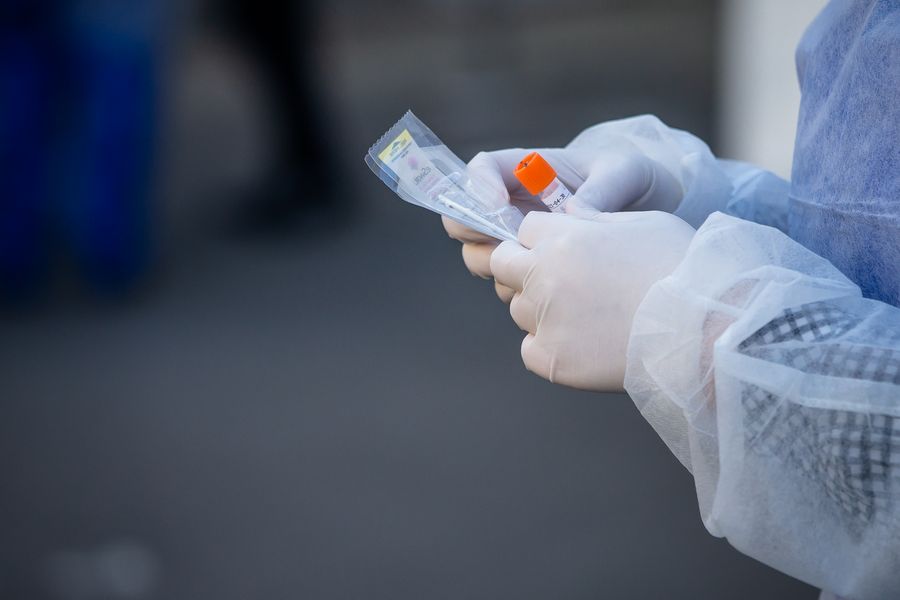 A medical biologist prepares to handle a swab to test a mediacal worker for the COVID-19 disease at a COVID-19 drive-in test center in Paris, France, April 1, 2020. (Photo by Aurelien Morissard/Xinhua)