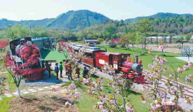 A sightseeing railway line links 18 family farm scenic spots in Lujia village. (Photo/Xia Pengfei)