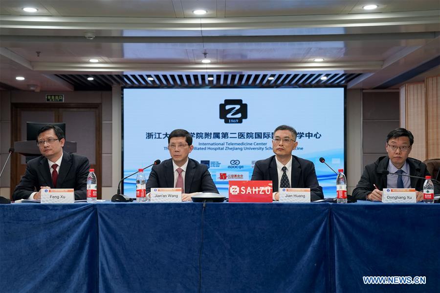 Chinese medical experts from the Second Affiliated Hospital of Zhejiang University School of Medicine attend a video conference to share experience in combating the COVID-19 with Ethiopian medical experts, in Hangzhou, east China's Zhejiang Province, April 10, 2020. (Xinhua/Yin Xiaosheng)