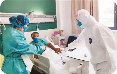 Photo taken on April 11 shows Chinese experts, dispatched to help Laos with its fight against the COVID-19, visiting confirmed COVID-19 patient at Mittaphab Hospital (150 hospital), a designated hospital for treating COVID-19 patients in Vientiane, capital of Laos. (Photo provided by the Chinese anti-epidemic medical expert team to Laos)