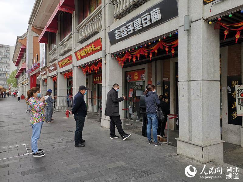 Citizens queue up for shopping with a certain distance between each other. (Photo/Zhou Wen)