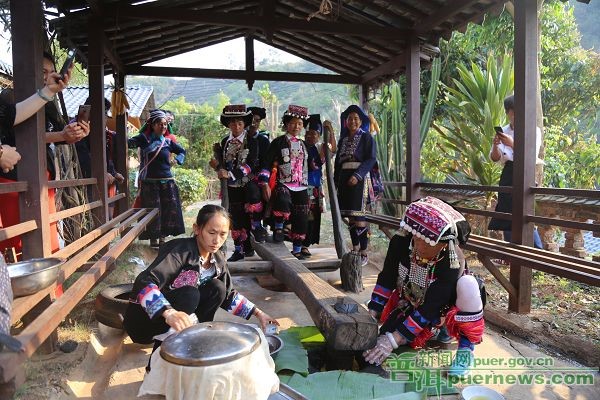 On April 7, the Hani Traditional Culture Performance activities sponsored by Hani Society in Pu'er City were held in Nuoma Amei Manor, where visitors and guests watched the Hani's intangible cultural heritage performances, including Mojiang Hani Cowhide Drum Dance, Hani Embroidery, Hani Glutinous Rice Cake Pounding etc. The players of national sports further brought wonderful performances of crossbows, swings, and gyros etc.