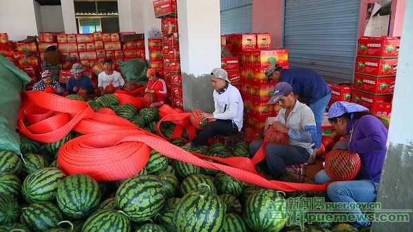 In 2020, the farmers of Menggen Village have grown 1,556 mu of watermelons, an increase of 300 mu than 2019, with the yield of around 3t per mu; and the output value is expected to be approx. RMB8 million, benefiting 476 households of melon farmers, with an average income of over RM20,000. In addition, during the watermelon harvest season, every "jobber" can pack more than 2t a day, earning over RMB200 per day.