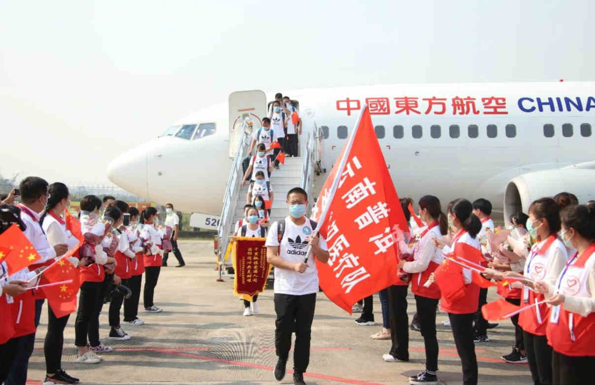At 10:17 am on April 3, a plane carrying 50 medical team members of Pu'er aiding Wuhan landed safely at Simao Airport.