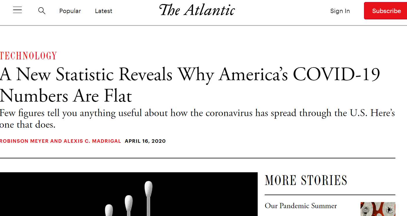 According to the Atlantic, the positive testing rate in the US is a decent proxy for the severity of the country's outbreak, and it shows clearly that the US still lags far behind other countries in the course of fighting such a lethal pandemic.