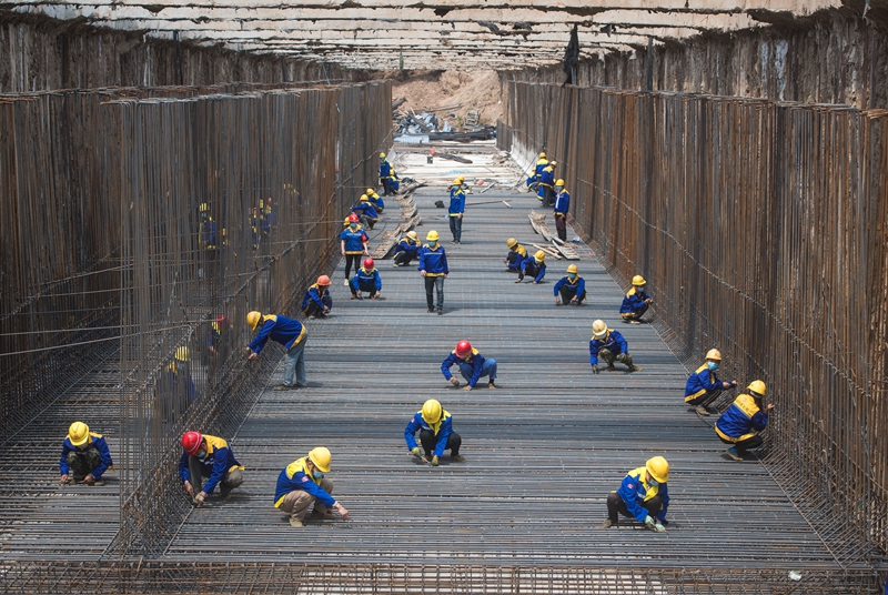 People work at a construction site of a utility tunnel in Wuhan, central China's Hubei Province, April 30, 2020. (Xinhua/Xiao Yijiu)