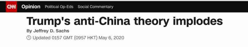 On May 5, CNN published an op-ed entitled “Trump's anti-China theory implodes”. The article, authored by Jeffrey D. Sachs, professor and director of the Center for Sustainable Development at Columbia University, poured cold water on such claims, noting that blaming China for America’s problems is “the big lie of the Trump administration”.