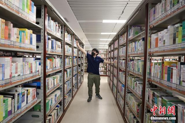 A reader takes a book from a shelf of the Tongzhou District Library on May 7. On the same day, the Tongzhou District Library in the sub-center of Beijing officially reopens. After the opening, measures are taken, including the current restrictions and a reservation system, with only online reservations acceptable. 120 readers can be received each day (60 in the morning and 60 in the afternoon). (Photo/Chinanews.com)