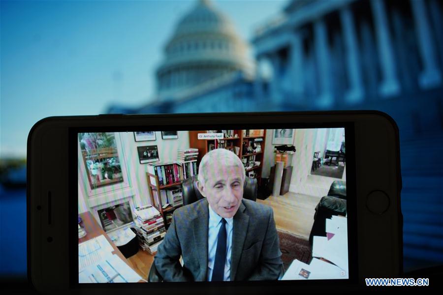 Anthony Fauci, director of the National Institute of Allergy and Infectious Diseases, speaks during a teleconference hearing hosted by a Senate panel on the White House's response to the coronavirus, in Washington D.C., the United States, May 12, 2020. Anthony Fauci, a top expert on infectious diseases in the United States, said on Tuesday that the nation has not had the ongoing coronavirus outbreak under "total control" yet. (Xinhua/Liu Jie)