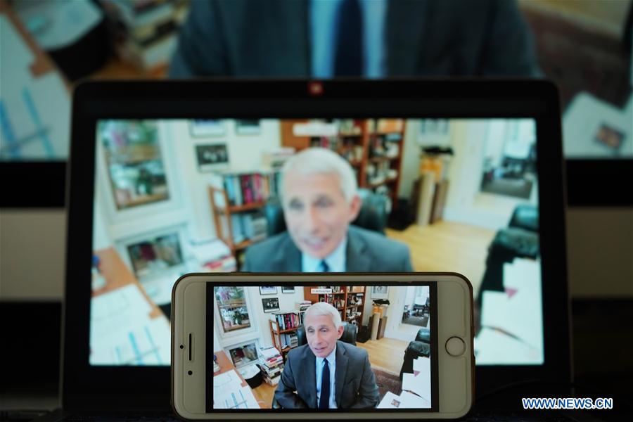 Anthony Fauci, director of the National Institute of Allergy and Infectious Diseases, speaks during a teleconference hearing hosted by a Senate panel on the White House's response to the coronavirus, in Washington D.C., the United States, May 12, 2020. Anthony Fauci, a top expert on infectious diseases in the United States, said on Tuesday that the nation has not had the ongoing coronavirus outbreak under "total control" yet. (Xinhua/Liu Jie)