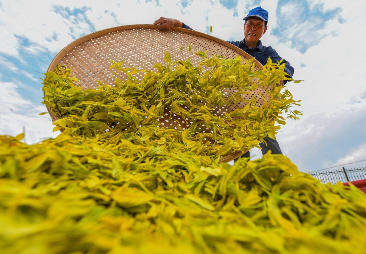 A farmer dries tea leaves in a tea farm in Yuntai Mountain, Shuangpai County, Yongzhou in central China’s Hunan province on May 2. Photo by Jiang Keqing/ People’s Daily Online