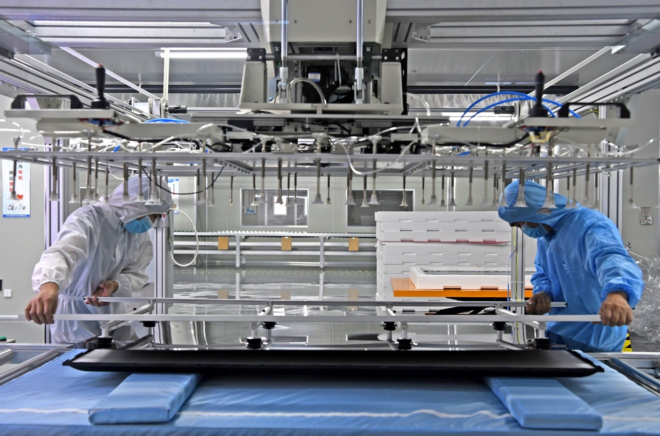 A company in the high-tech industrial development zone of Huainan, Anhui province starts mass production of super large LCD modules, on April 23, 2020. (Photo by Chen Bin/People’s Daily Online)