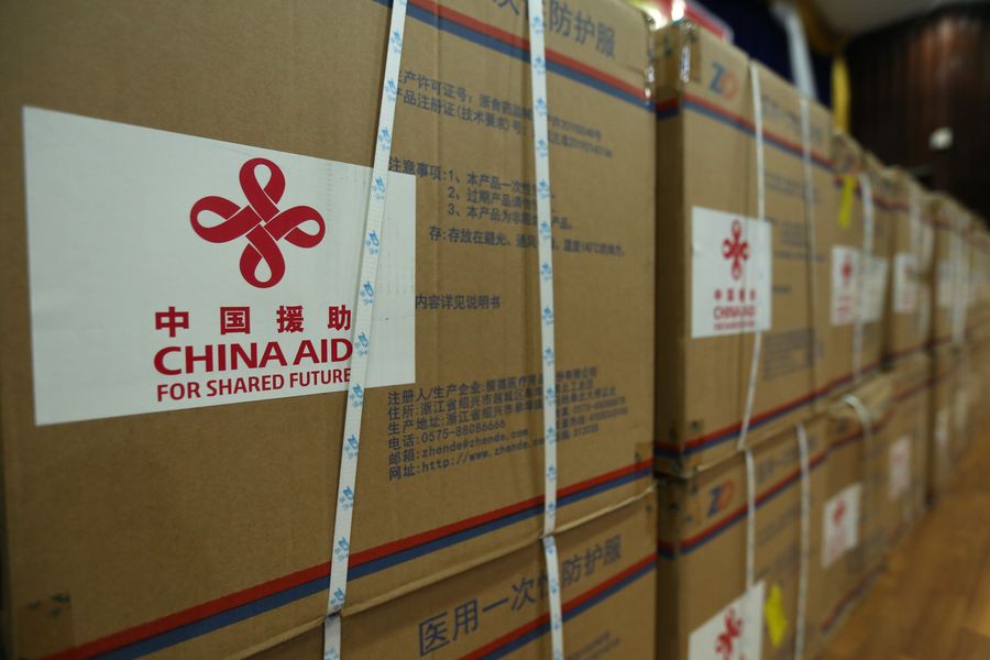 Airport workers unload cargos of Chinese medical supplies at the Yangon International Airport in Yangon, Myanmar, April 8, 2020. (Xinhua/U Aung)