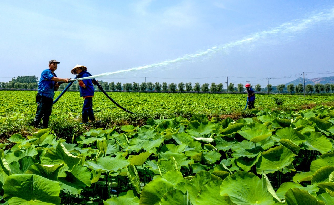 Villagers fertilize a lotus pond in Lucheng township, Lujiang county, Hefei, east China’s Anhui province, May 17, 2020. Zuo Xuechang, People’s Daily Online