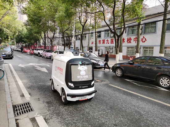 A robot delivering parcels in Wuhan. (Photo/People's Daily Online)