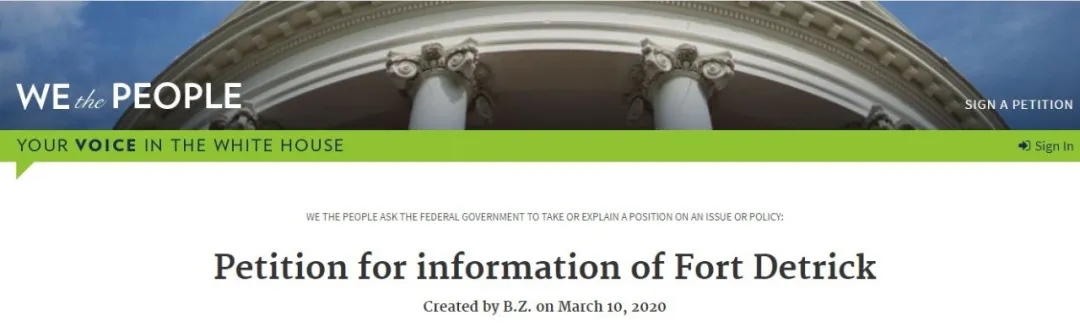 On March 10, a netizen named B.Z. launched a petition on the White House petition website. The petitioner listed the timeline related to the COVID-19 outbreak and the Fort Detrick, hoping that the US government would give a reasonable explanation: