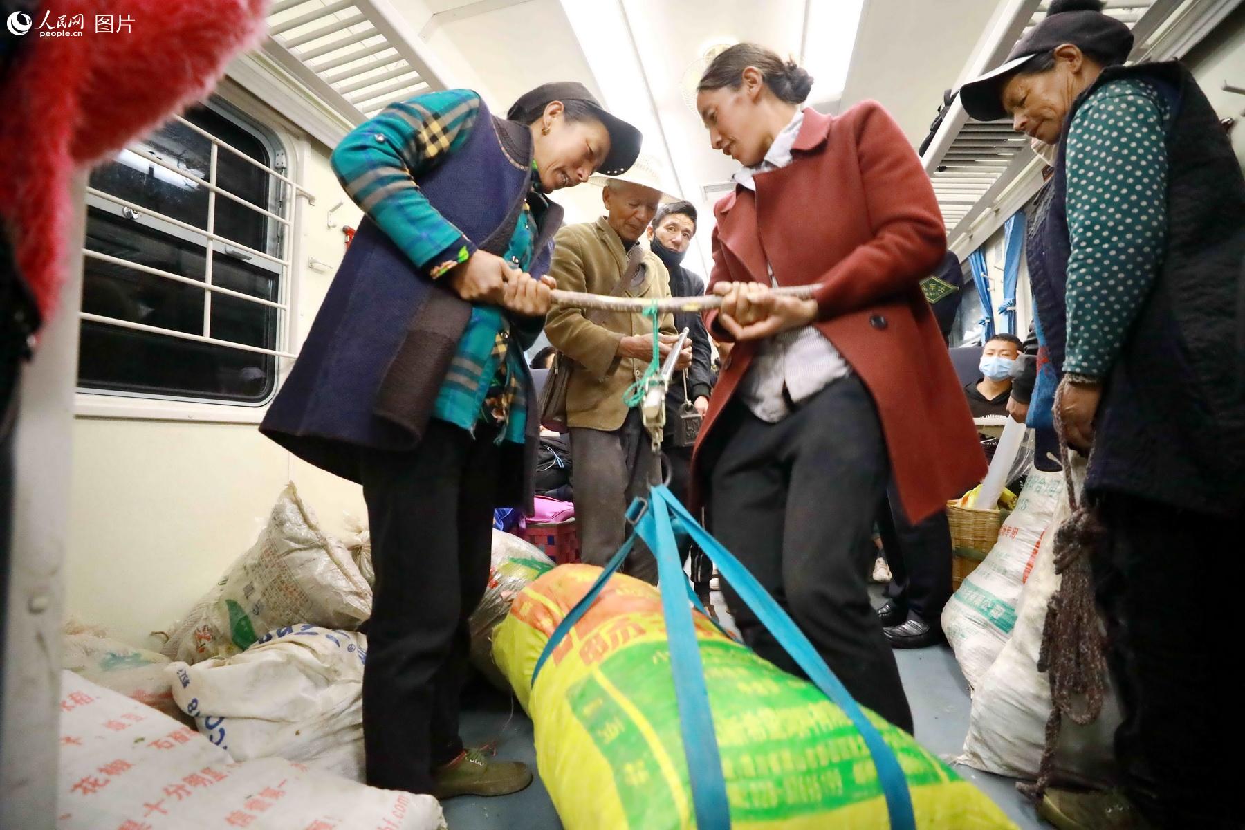 Local people of the Yi ethnic group are turning to the famous low-speed green trains that run from Chengdu, capital of southwest China's Sichuan province, and Kunming, capital of southwest China's Yunnan Province, to boost their incomes.