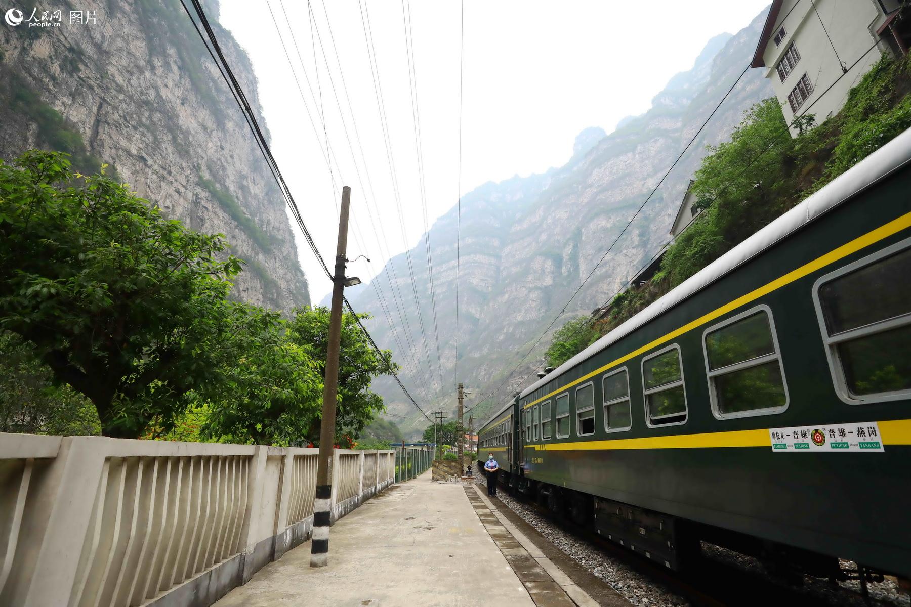 On May 20, Train No. 5619 from Yangang to Puxiong stops in a mountainous area. (Photo/Li Kai)