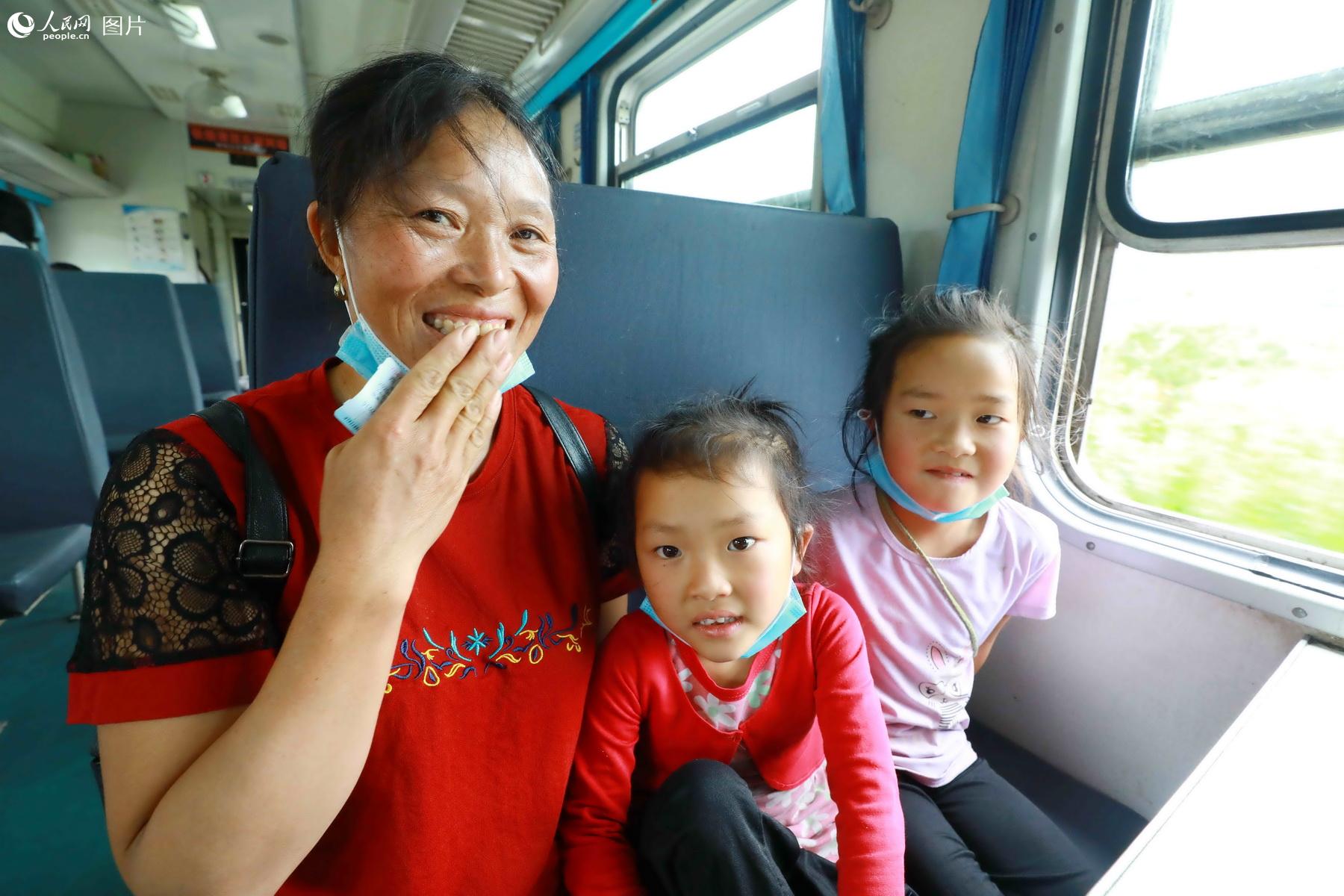 A passenger with her two daughters on Train No. 5633 on May 21. (Photo/Li Kai)