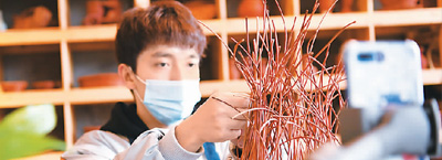 A staff member with a Guizhou-based company gives training on making rattan plaited articles online. (Photo/People's Daily)