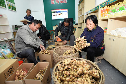 Photo taken on Nov. 9, 2018 shows villagers pack fresh ginger and organic rice at an e-commerce service center in Tuling village, Hongtang township, Yichun city in southern China’s Jiangxi province, to prepare goods for the upcoming Double 11 online shopping spree. Photo from People’s Daily Online