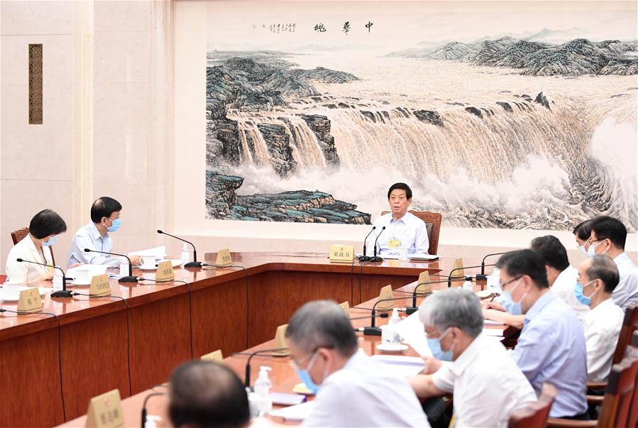 Li Zhanshu, chairman of the National People's Congress (NPC) Standing Committee, presides over a chairpersons' meeting of the 13th NPC Standing Committee in Beijing, capital of China, June 19, 2020. (Xinhua/Shen Hong)