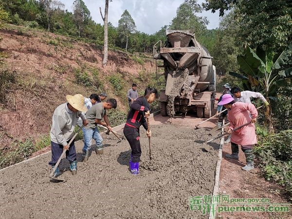 Wendong Village, Zhentai Town, Zhenyuan Yi & Hani & Lahu Autonomous County, Pu'er City, despite the limited funding they can get, adopted the method of "welfare to work", public's participation in the form of labor and other methods to implement villager team’s road hardening projects.