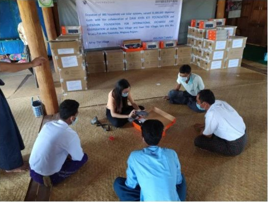 The project raised 300 sets of miniature solar power generation equipment (systems) and 1700 solar table lamps to be donated to the families, temples and schools of Ashay Thiri and Ywar Thit counties in the province.