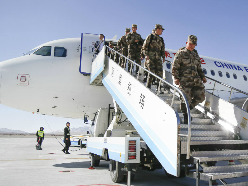 Over 800 newly recruited soldiers of the Ngari Military Sub-District in Southwest China’s Tibet Autonomous Region arrive at the Ngari Gunsa Airport by a civil flight, April 11, 2019. Photo by Liu Xiaodong/People’s Daily Online