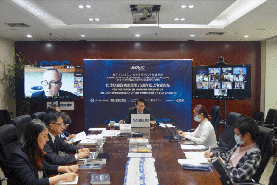 Photo shows the online forum held in commemoration of the 75th anniversary of the signing of the UN Charter. (Photo from the website of the Center for China and Globalization (CCG))