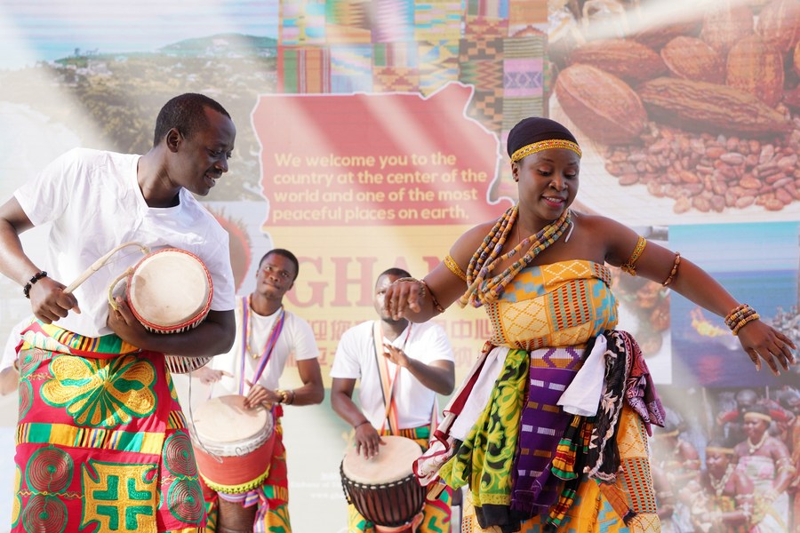 Troupers perform during the "Ghana Day" at the Beijing International Horticultural Exhibition in Beijing, capital of China, Sept. 18, 2019. (Xinhua/Ju Huanzong)