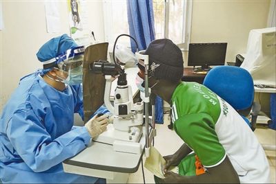 A Chinese medic assisting Senegal conducts eye check-up for a local patient. Photo courtesy of the 18th batch of Chinese medical teams assisting Senegal