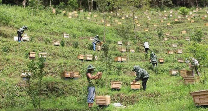 Banmu Village, Mensuo Town, Ximeng County, introduced Yunnan Ding’s Honey Group to develop the local beekeeping industry in 2018. Nowadays, 2,000 groups of Chinese bees have been raised in the village. At the same time, 10 poor households with strong intentions and potentials for development are arranged to work in enterprises, and they receive a monthly salary of 2,600 yuan, and each person can have a stable income of 31,200 yuan per year.