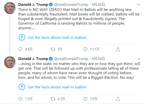 On May 26, Twitter labeled two tweets from Donald Trump making false statements about mail-in voting as “potentially misleading.” It was the first time the platform had fact-checked the president.