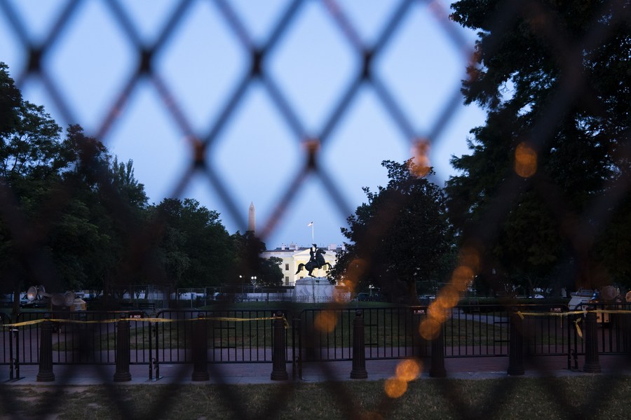 The White House and the statue of former U.S. President Andrew Jackson are seen in Washington D.C., the United States, on June 24, 2020.(Xinhua/Liu Jie)