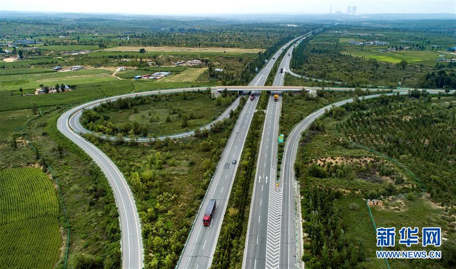 Vehicles run on the Yulin-Jingbian Expressway through the Mu Us Desert in Yulin City, northwest China's Shaanxi Province, Aug. 1, 2018. The expressway is the first of the kind built in a desert in China. (Xinhua/Tao Ming)