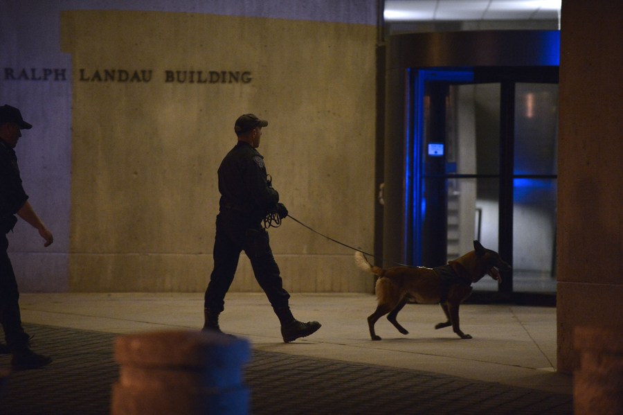 Policemen patrol on the Massachusetts Institute of Technology (MIT) campus in Boston, the United States, April 19, 2013. (Xinhua/Zhang Jun) (lyx)