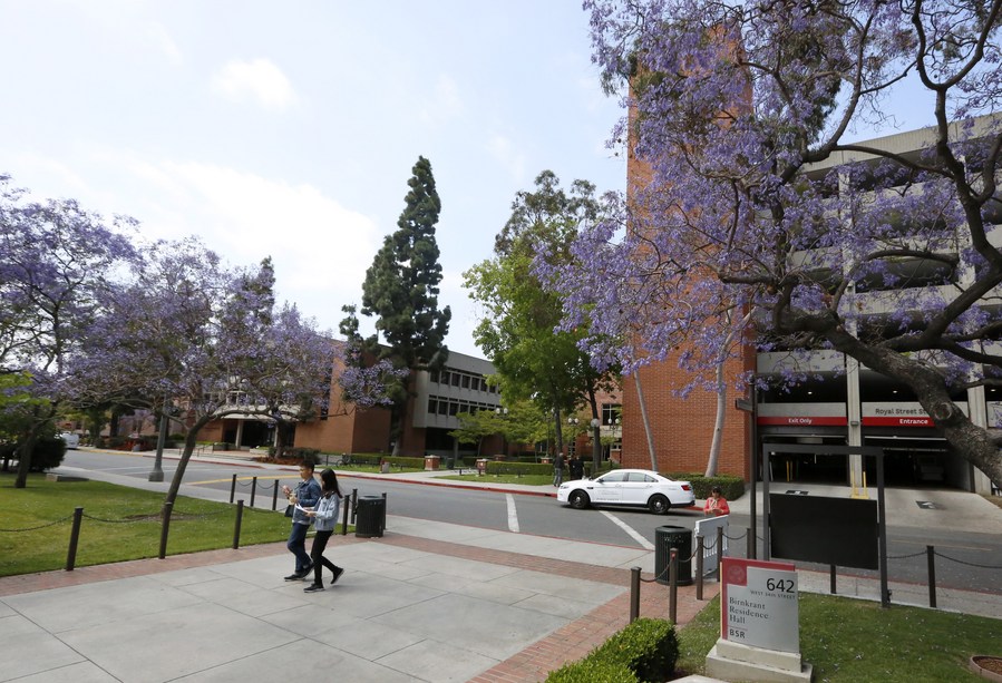 Two Chinese students walk on the campus of the University of Southern California in Los Angeles, California, the United States, June 3, 2019. (Xinhua/Li Ying)