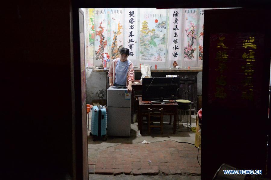 A villager transfers family belongings during an emergency evacuation in Gaotai Township which lies within the Mengwa Flood Detention Area in Funan County, east China's Anhui Province, July 19, 2020. Hydrological authorities have issued a red alert for floods in the Huaihe River drainage area on Monday. An emergency evacuation was organized between late Sunday and early Monday for residents in the Mengwa Flood Detention Area to prepare against upcoming floods. (Xinhua/Huang Bohan)