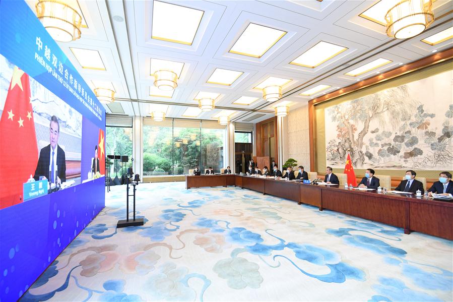 Chinese State Councilor and Foreign Minister Wang Yi co-chair the 12th meeting of the China-Vietnam Steering Committee for Bilateral Cooperation with Vietnamese Deputy Prime Minister and Foreign Minister Pham Binh Minh via video link in Beijing, capital of China, July 21, 2020. (Xinhua/Shen Hong)