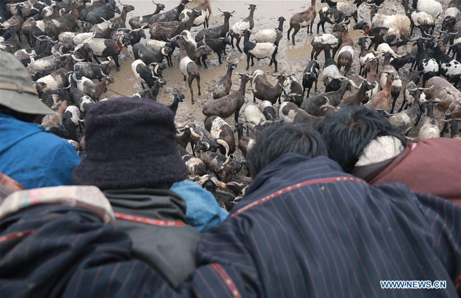 Local herdsmen try to find their lost sheep at the pasture Qianyangya in Koce Township of Gannan Tibetan Autonomous Prefecture, northwest China's Gansu Province, July 25, 2020. Since the 1980s, the pasture in Koce Township has been used as an area to reunite lost and found livestock with their owners. Once a year, local herdsmen gather here for one day to bring the livestock they have found while herding and look for their lost ones by identifying the body marks on cattle or sheep. The livestock can be brought home when their ownership is confirmed by most attendees. So far, over 20,000 lost and found livestock have returned to their owners. (Xinhua/Du Zheyu)